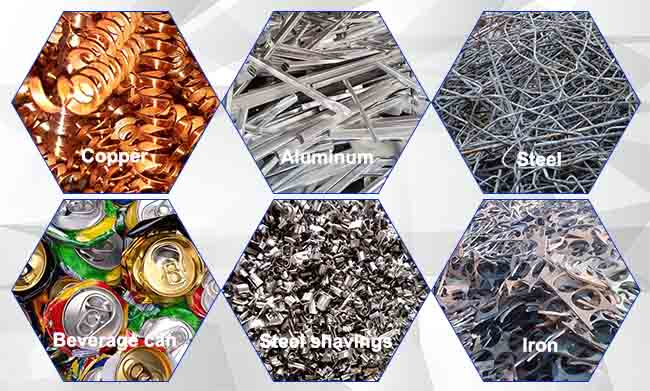 The materials include: steel shavings, scrap steel, scrap aluminum, scrap copper, scrap stainless steel, scrap car scrap, etc.